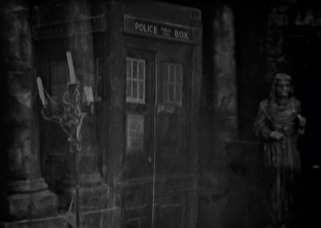 It’s not surprising, therefore, that in the Doctor Who MInd Robber’s survey of 1960s Doctor Who we could find no references whatsoever to Halloween. What we did stumble upon was Journey into Terror, also known as Episode 4 of the 1965 story The Chase. As an adult the episode appears extremely tacky, although to a five or six year old child it would undoubtedly be a source of nightmares. Journey into Terror chronicles the TARDIS crew’s adventures in a Haunted House. Although the Doctor and his companions are in a 1996 fairground attraction the Doctor believes them to be in dark recesses of the human mind. Count Dracula, Frankenstein and the Grey Lady all reside in the house and are impervious to the extermination attacks of the Daleks. Vicky goes missing and a facsimile robot of the Doctor is made by the Daleks. Join us for this photo essay of the Doctor’s journey through a world of horror. Happy Wholloween!
