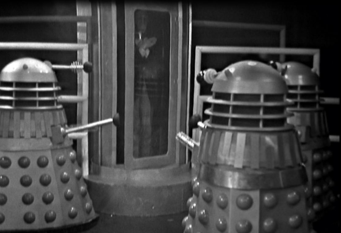The robotic replica of the Doctor is produced. The Daleks clearly have bad sight as they believe that the replica is indistinguishable from the original