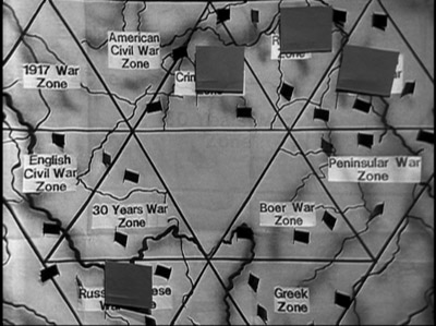 Who stock footage was also utilized in episode 10 of The War Games when, akin to Wheel, the Doctor again reflected his thought patterns to a wall. In this instance it was the benefit of the Time Lords who were provided with details of the monsters the Doctor had recently fought, namely Daleks, Cybermen, Yeti, Ice Warriors and Quarks.