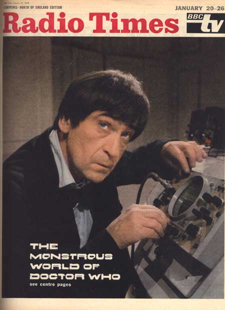 “A still protesting Doctor spins away through a dark void to begin his sentence of exile on Earth with a new appearance. His face is shrouded in shadow …” (Episode 10)