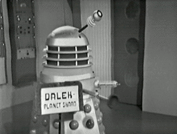 “The Doctor and Ian, menaced by a group of Robomen, prepare to escape by diving into the Thames. As they turn, they see rising slowly from the water the familiar shape of a Dalek.” (Episode 1)