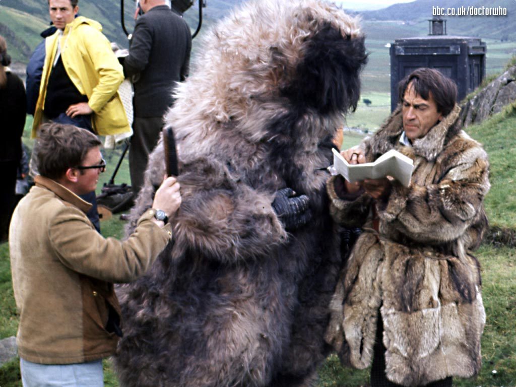 As a consequence of these production limitations the absence of a cast member presented extraordinary difficulties. The luxury of filming out of order and six months in advance of screenings did not exist, so there was no means by which the ill actor could film their scenes at a later time. Hence the extraordinary decision to retain the character of Jamie in episode two but have him played by an altogether different actor. The fictional nature of the story, in which the Doctor and his companions were constantly confronted by challenges, afforded the opportunity for Jamie’s identity change to become part of a game. Having been turned into a life size cardboard cut-out, Jamie’s face was removed and he could not be animated again until the Doctor put the puzzle pieces of his face correctly together. On a board where three or four photographs of eyes, noses and mouths. In a flustered state the Doctor chose the wrong pieces and Jamie was reanimated with a different face. When Hines returned in episode three Jamie was again transformed into a cut-out. The Doctor was successfully able to complete Jamie’s face puzzle, this time with the assistance of the very attentive Zoe. In the interim Wilson had superbly perfected Jamie’s mannerisms.