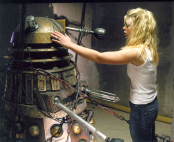Unfortunately the Quarks proved to be appalling monsters. Small in stature, school children were encased within them for the filming. They shuffled around, always looking as though they were about to tumble over, and had arms that were even more impractical than the Daleks’. They were easily defeated, at one stage by a conveniently light boulder pushed from a hill top by Cully, the only resident of Dulkis to rebel from their pacifism. Created by Haisman and Lincoln specifically for their marketing potential, the Quarks were almost the subject of legal proceedings between the writers and the BBC. Relations between the writers and Doctor Who deteriorated further when the serial was cut from six episodes to five and substantially rewritten. Haisman and Lincoln sought to have their names removed from the credits and accordingly a pseudonym, “Norman Asby”, which was taken from the first names of the writers’ father-in-laws, was adopted.
