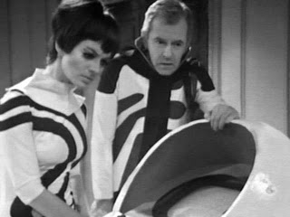 Clent and Miss Gifford with the futurist great World Computer. The Brittanicus Base crew had the most fabulous close fitting outfits