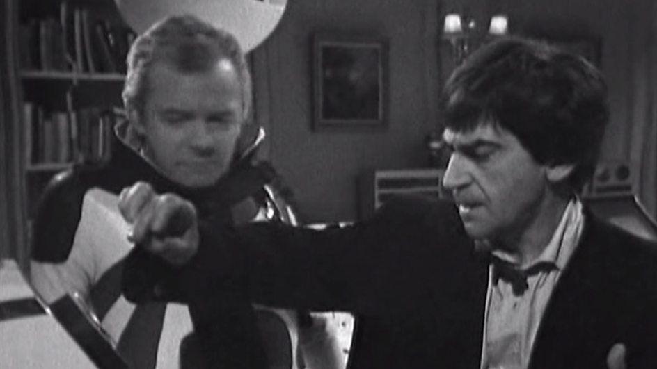 Although the Doctor can operate an artificial food dispenser (with retro telephone dial) he is a little confused about the relationship between plants and carbon dioxide. He is pictured here with Leader Clent.